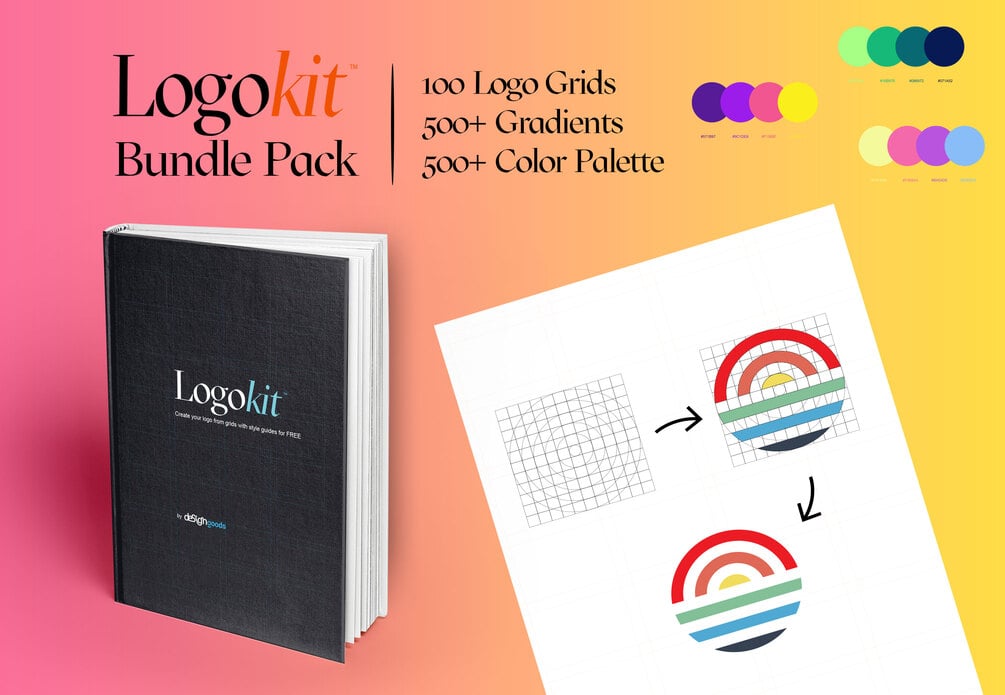 You’ll get: 100+ logo grids with 500+ gradients and color schemes in Illustrator and PDF formats.